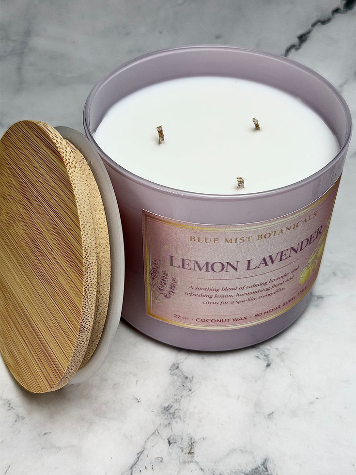 🌿 Blue Mist Botanicals Lemon Lavender Luxury 3-Wick Coconut Wax Candle